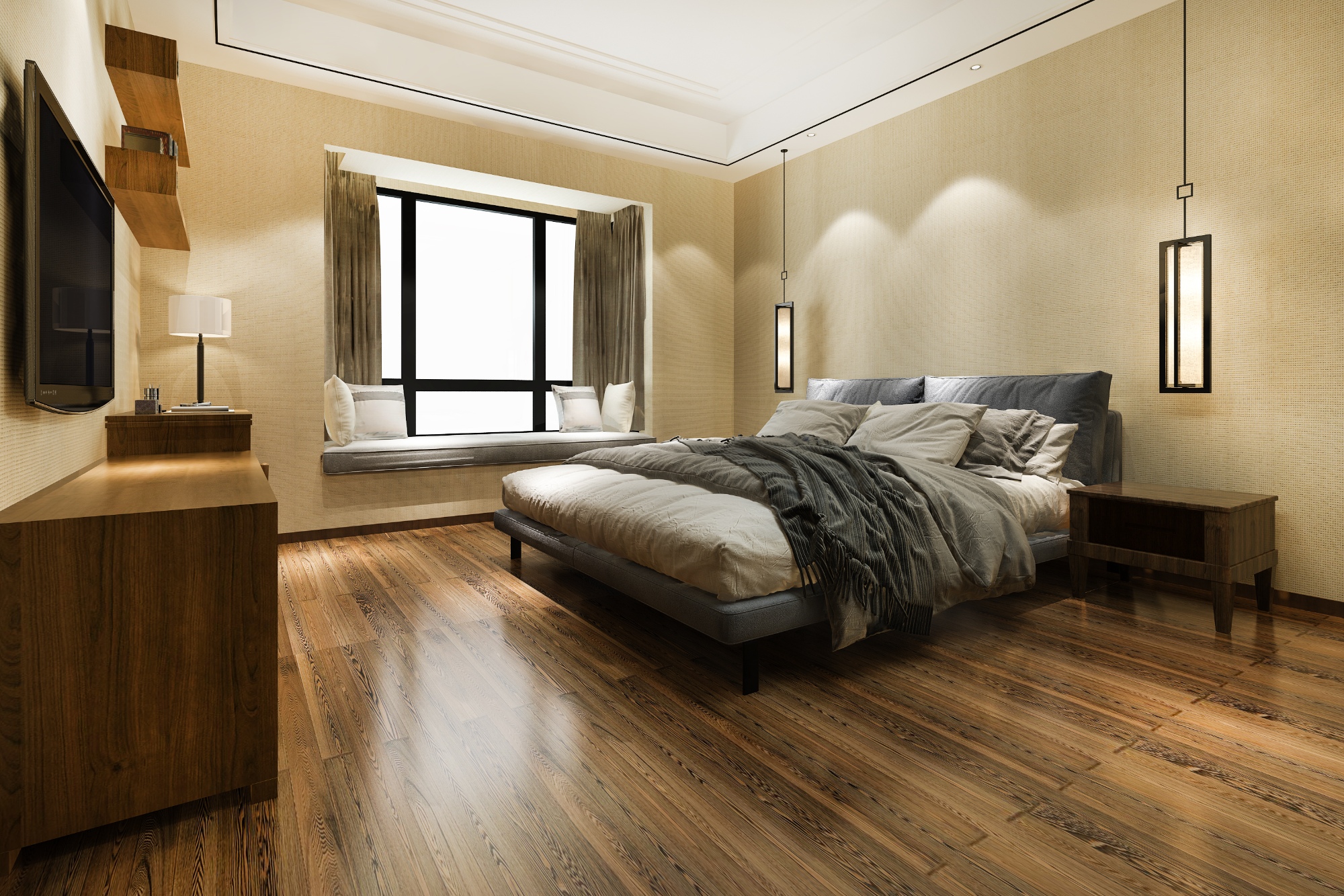 - Bedrooms: Add style and comfort to your bedroom with laminate flooring in calming colors and textures. It’s a practical and attractive option that pairs beautifully with area rugs for a cozy, finished look.